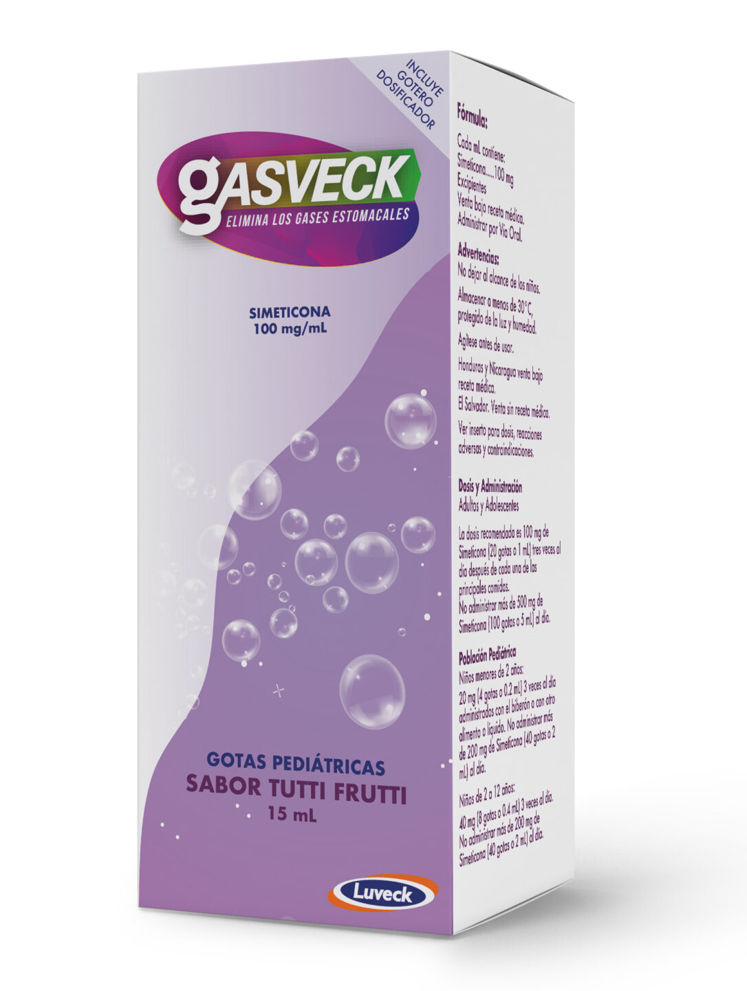 Ingrediente Activo: Simeticona 100mg/ml Categoría Terapéutica: Antiflatulento Indicaciones: Alivio sintomático de los gases en adultos, niños y lactantes.